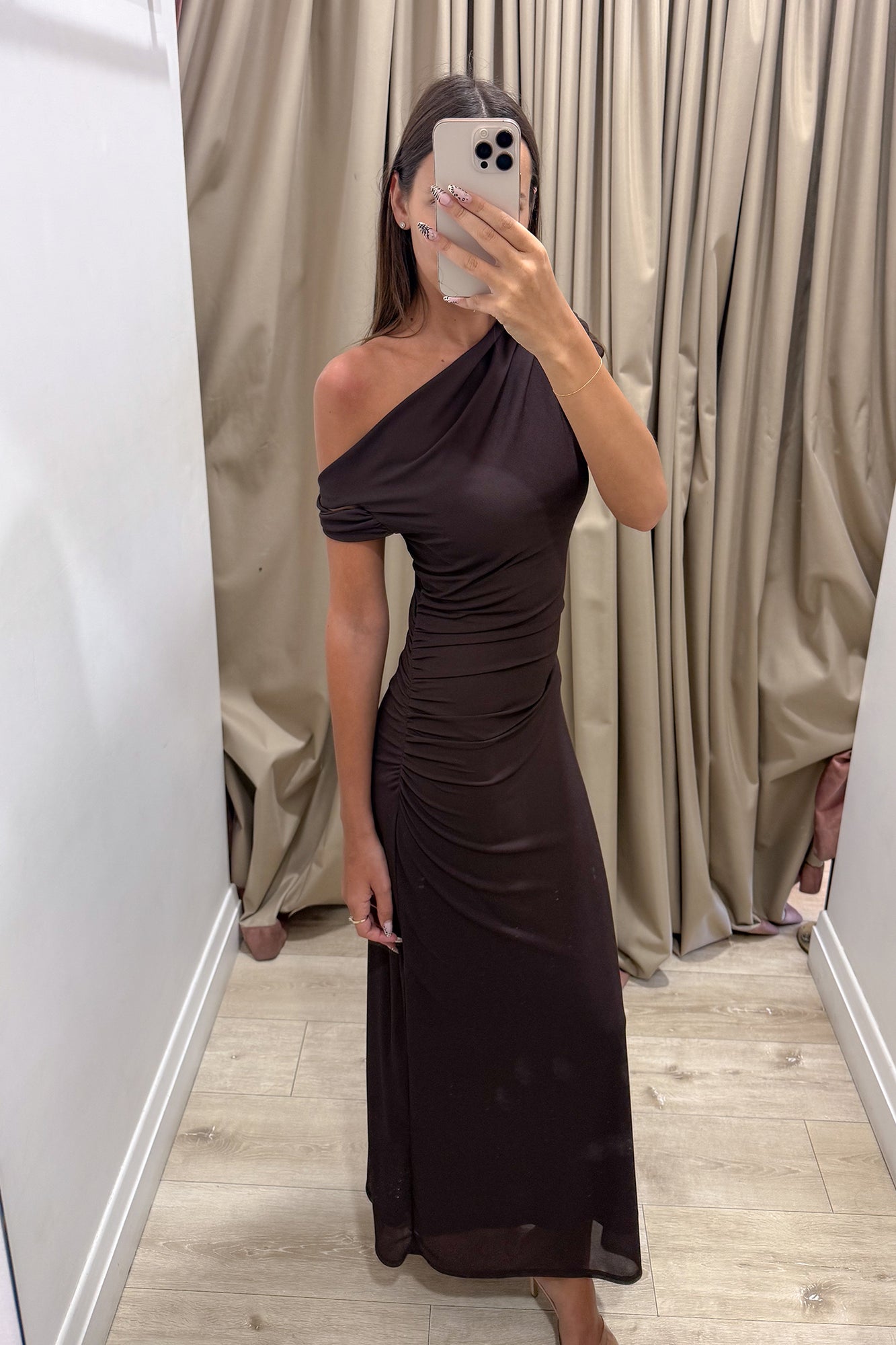 Paris Draped Mesh Midi Dress by Forever New is true to size.
