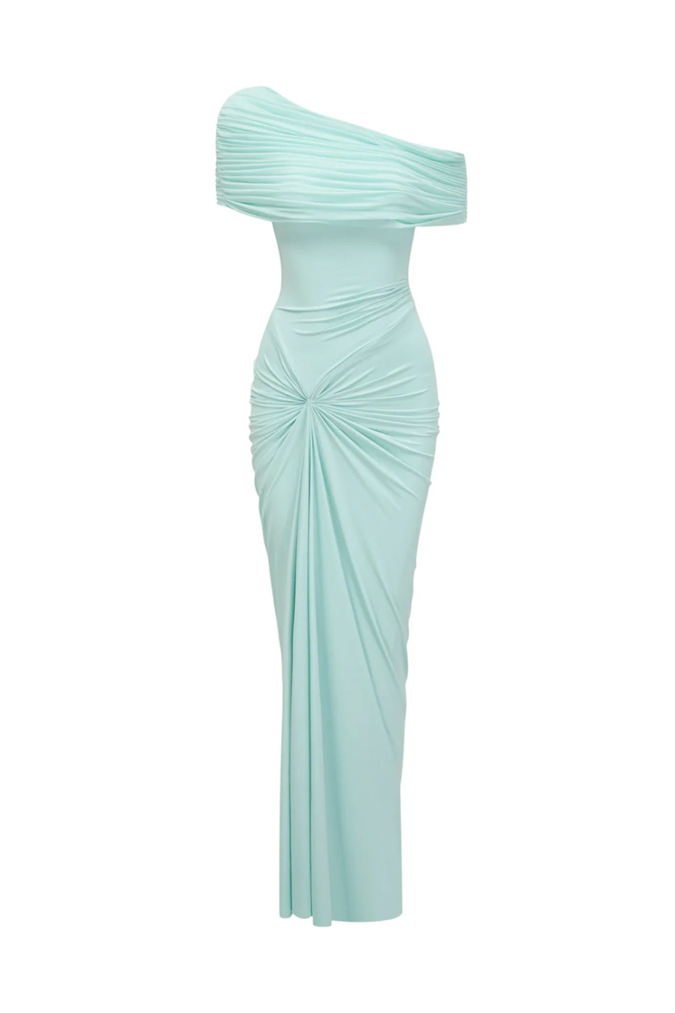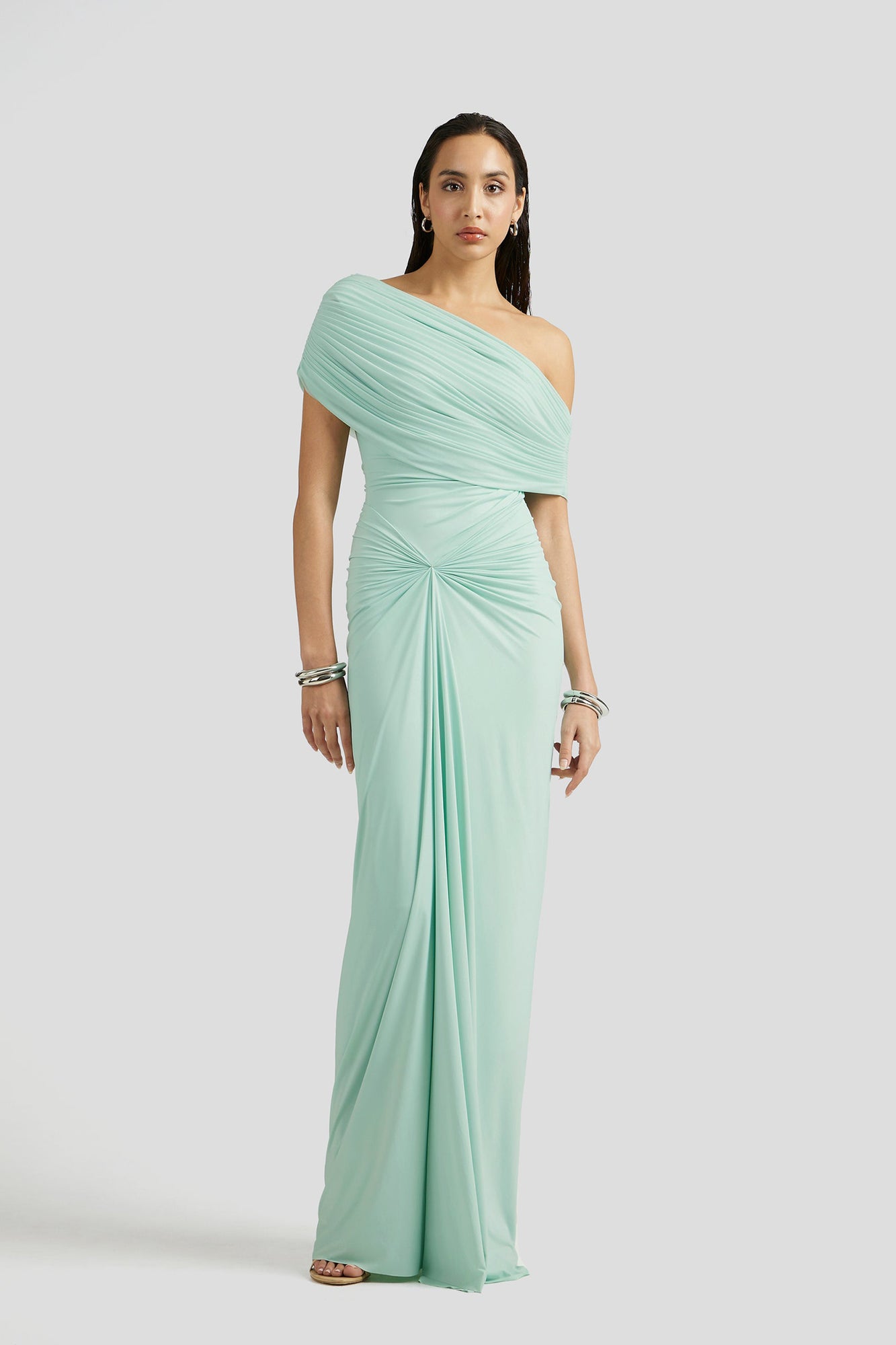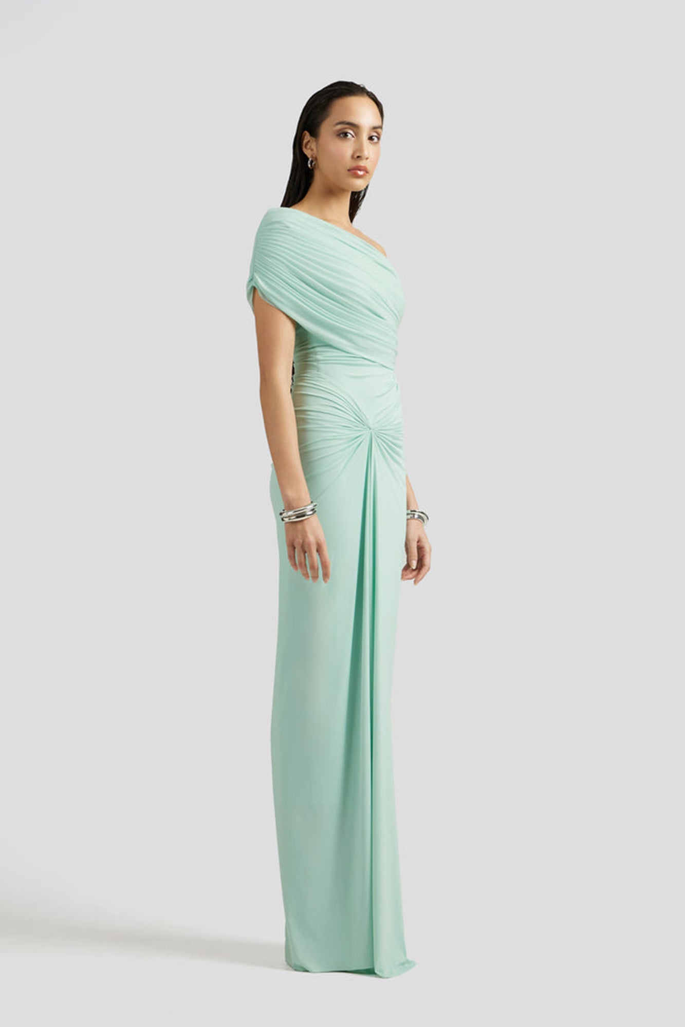 Katya Green Asymmetrical Gathered Maxi Dress